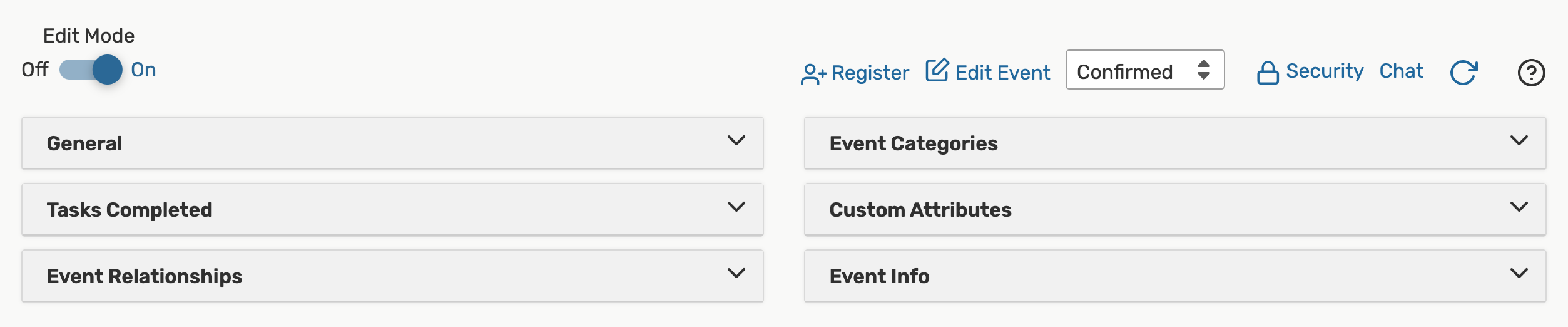 - General - This section has all of the basic event information; most of it can be inline edited.